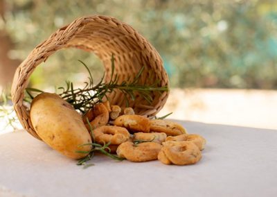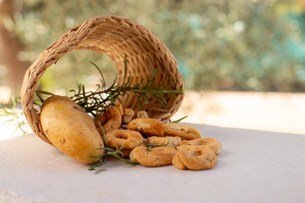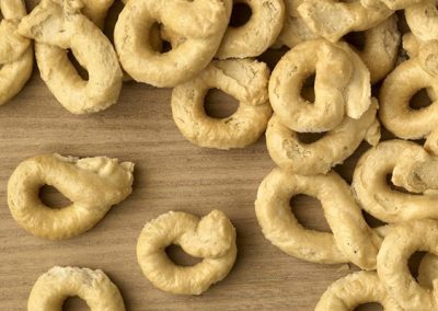 Il prodotto principe di questa realtà aziendale è il tarallo, proposto in svariate forme e aromatizzazioni. I taralli Danieli vengono fatti a mano seguendo antiche ricette tramandate in segreto e sono creati grazie all’utilizzo di materie prime come la farina proveniente dal tavoliere di Puglia e l’olio extravergine di oliva, evitando l’utilizzo di conservanti.